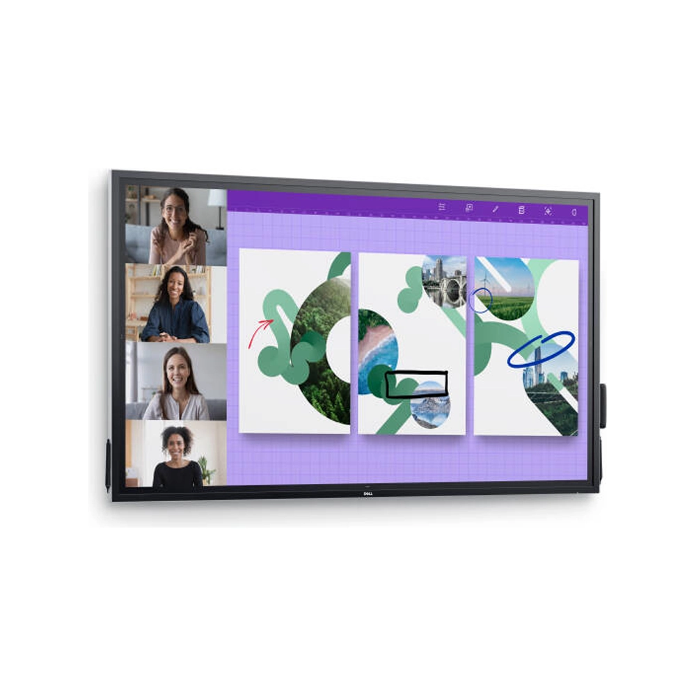 The Dell P7524QT is a large 75-inch interactive touch monitor. It shows clear and bright 4K UHD visuals. Moreover, the touchscreen is smooth and accurate. You can write, draw, and move items with ease. Additionally, it supports up to 20 touch points at the same time.